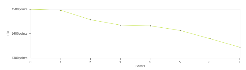 Different opponents: 3 || Average games/opponent: 2.33 || Total inflation: 38 || Games vs overrated: 29% || Games vs underrated: 71%
